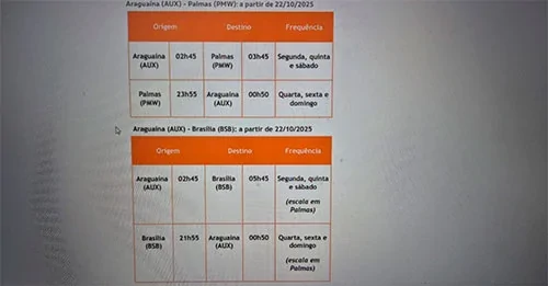 De acordo com informações da assessoria da administração municipal, divulgadas no dia 6 de agosto, a Gol teria confirmado que serão três voos semanais nas terças, quintas-feiras e aos sábados, com saída de Araguaína. A nova rota inclui paradas em Palmas e Brasília.